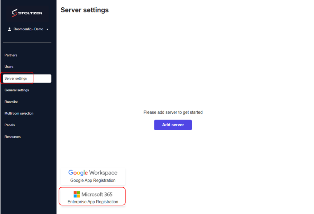 The Enterprise App is now registered, and next task is to add the connection. – Click the “Add server” button.